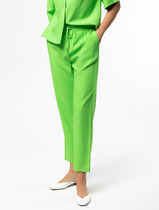 Брюки выполнены из костюмной ткани. Брюки прямого покроя длиной в пол, на притачном поясе с эластичной тесьмой. Спереди боковые карманы с наклонным входом.