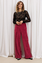 Брюки расширенного силуэта, с отрезным поясом, без застежки, верх брюк присборен на резинку. Брюки без боковых швов.