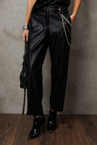 Брюки расширенного силуэта, с отрезным поясом, без застежки, верх брюк присборен на резинку. Брюки без боковых швов.