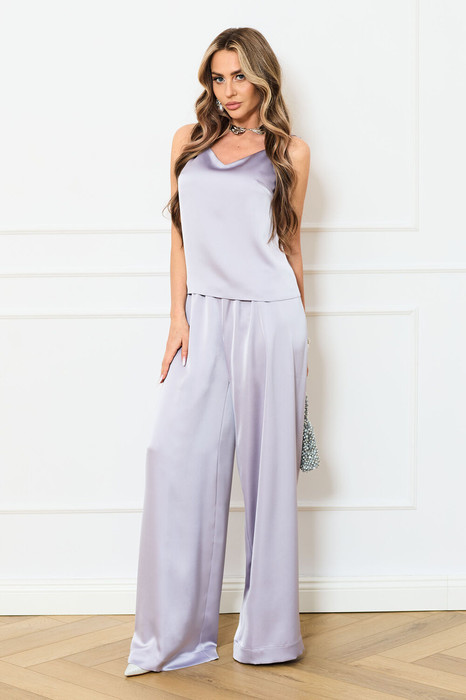 Брюки прямые, с отрезным поясом. Пояс присборен на резинку.
