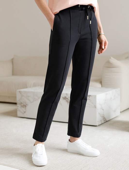 Состав: 75%Хлопок 20%ПЭ 5%ПУ Плотность: 240 Г/м2Брюки выполнены из эластичного футера-двухнитки. Модель дополнена застроченными стрелками, что визуально вытягивает силуэт. Эластичный пояс на резинке с хлопковым шнурком и металлической фурнитурой. Брюки сочетаются в костюме с футболкой D49.031 и бомбером D49.038