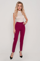 Брюки женские типа «бананы». По переду обработаны фигурные карманы, застежка на молнию, отстрочены складки. Сзади фигурная отстрочная кокетка и фигурные накладные карманы, декорированные металлическими хольнитенами. Верх обработан притачным поясом со шлевками, застегивающимся на кнопку. По низу брюк спереди и сзади отстрочены вытачки.