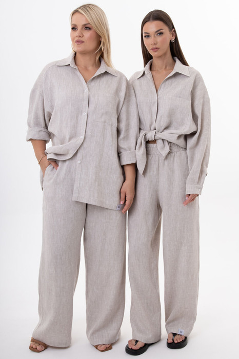 Универсальный дизайн подходит для офиса, прогулок или путешествий, легко комбинируется с базовыми футболками, рубашками и объемными кардиганами. Выбирайте брюки из льна с вискозой — ваш надежный спутник в мире современной моды, где ценится экологичность, комфорт и безупречное европейское качество.