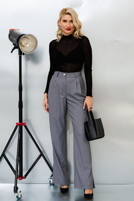 Базовые брюки чуть расширенные к низу. Застежка на брючную молнию. По переду расположены складки, карманы с наклонным входом. Удобные брюки для повседневной носки.