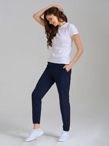 Брюки мужские из меланжированного трикотажного полотна "кулирка", прямого силуэта, с карманами в боковых швах, на притачном поясе с эластичной тесьмой внутри. В центре пояса - две обметанные петли , через которые продет шнурок для регулирования степени прилегания шорт по талии.