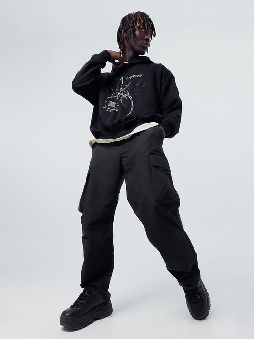 Брюки карго изготовлены из ткани.