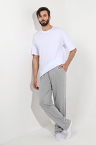Брюки мужские из гладкокрашенго трикотажного полотна "футер 2 -нитка", свободного покроя, на притачном поясе с эластичной тесьмой внутри, с карманами в боковых швах. Нижние срезы обработаны подгибкой.