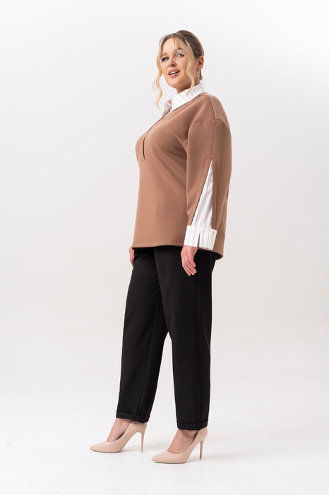 Подходят на осень, весну и для зимы. Брюки с удобной , высокой посадкой и боковыми карманами позволяют хранить мелкие вещи, такие как ключи или смартфон, что делает брюки не только стильными, но и практичным. По низу брюк обработаны манжеты. Пояс частично на резинке, застежка на молнию и петлю с пуговицей.