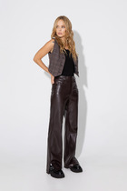 Классические прямые брюки из текстильной ткани. Детали: брюки с высокой посадкой, притачной пояс со шлевками, передние половины с небольшими мягкими складками и заутюженными стрелками, застежка на молнию и пуговицу, боковые карманы.