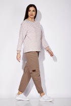 Промеры на примере 42 р.:  Длина изделия по боковому шву с учетом пояса 109 см. ОТ - 71 см, ОБ - 98 см. Ширина (1/2) брюк по низу 19,5 см.