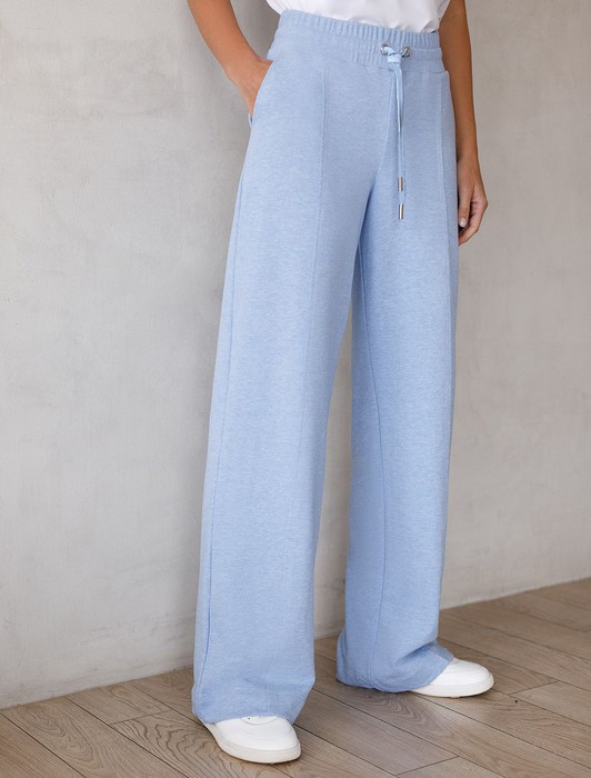 Состав: 80%Хлопок 20%ПЭ Плотность: 320 Г/м2Брюки прямого кроя с удобным эластичным поясом на резинке и карманами по бокам выполнены из премиального футера-двухнитки. Наличие эластана в составе гарантирует комфорт и долговечность изделия, материал хорошо пропускает воздух, позволяя телу дышать.. Эти уютные брюки нежного голубого цвета с эффектом меланж созданы для вашего комфорта. Свободный прямой крой обеспечивает свободу движений и максимальное удобство в любых ситуациях, поэтому они подойдут и на большие размеры, а так же на высокий или низкий рост. Фигура подчеркивается, а силуэт визуально вытягивается за счет кроя палаццо и застроченных декоративных стрелок. Вы можете создать стильный образ на каждый день в сочетании с джемпером D49.139 и бомбером D49.141. В повседневных трикотажных брюках вы будете чувствовать себя комфортно и уверенно, наслаждаясь каждым моментом дня.