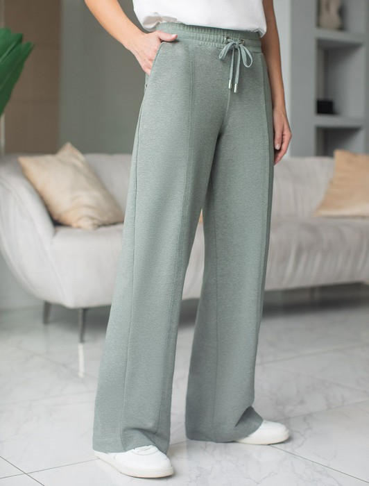 Состав: 80%Хлопок 20%ПЭ Плотность: 320 Г/м2Брюки прямого кроя с удобным эластичным поясом на резинке и карманами по бокам выполнены из премиального футера-двухнитки. Наличие эластана в составе гарантирует комфорт и долговечность изделия, материал хорошо пропускает воздух, позволяя телу дышать.. Эти уютные брюки нежного оливкового цвета с эффектом меланж созданы для вашего комфорта. Свободный прямой крой обеспечивает свободу движений и максимальное удобство в любых ситуациях, поэтому они подойдут и на большие размеры, а так же на высокий или низкий рост. Фигура подчеркивается, а силуэт визуально вытягивается за счет кроя палаццо и застроченных декоративных стрелок. Вы можете создать стильный образ на каждый день в сочетании с джемпером D49.139 и бомбером D49.141. В повседневных трикотажных брюках вы будете чувствовать себя комфортно и уверенно, наслаждаясь каждым моментом дня.