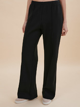 Брюки женские из трикотажной ткани (двунитка), слегка заужены к низу. По переду брюк расположены накладные карманы. На левом кармане настрочной декоративный элемент. В пояс вставлена резинка по кругу.