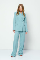 Эти уютные брюки пыльно-розового цвета созданы для вашего комфорта. Свободный прямой крой обеспечивает свободу движений и максимальное удобство в любых ситуациях, поэтому они подойдут и на большие размеры, а так же на высокий или низкий рост. Фигура подчеркивается, а силуэт визуально вытягивается за счет кроя палаццо и застроченных декоративных стрелок.