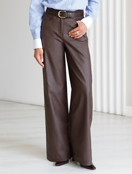 Брюки-трубы из эластичного хлопка с эффектом кожи