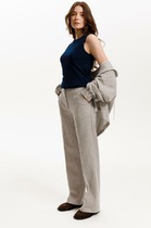 Брюки в полоску легко сочетать и носить практически с любой одеждой из базового гардероба. Например, очень стильно будут смотреться эти брюки, вписанные в деловой образ. Лучше сразу подобрать к ним подходящий верх – это может быть пиджак или модный жакет. Такой лук подойдет для офиса или учебы, так как выглядит очень формально и сдержано.