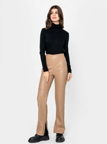 Средняя посадка, пояс притачной, застежка спереди на молнию и пуговицу. По переду боковые карманы.