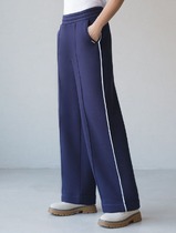 Брюки черного цвета прямого кроя выполнены из премиального футера-двухнитки. Лаконичный силуэт поддерживают застроченные стрелки, зрительно вытягивающие силуэт. Удобный пояс на резинке регулируется хлопковым шнурком с золотистой фурнитурой. Наличие эластана в составе изделия гарантирует комфорт и долговечность изделия. Эластичный материал хорошо пропускает воздух, позволяя телу дышать, и легко тянется, не ограничивая движения.