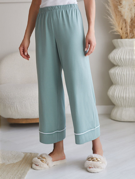 Контрастный кант по низу добавляет стильный акцент и возможность сочетать с белыми футболками нашего бренда. Эти брючки идеально подойдут тем, кто ищет стильное решение с учетом комфорта и удобства, в них вы будете женственны и утонченны даже в домашней обстановке.