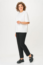 Брюки белого цвета зауженного кроя выполнены из премиального футера-двухнитки. Лаконичный силуэт поддерживают застроченные стрелки, зрительно вытягивающие силуэт. Удобный пояс на резинке регулируется хлопковым шнурком с золотистой фурнитурой. Наличие эластана в составе изделия гарантирует комфорт и долговечность изделия. Эластичный материал хорошо пропускает воздух, позволяя телу дышать, и легко тянется, не ограничивая движения.