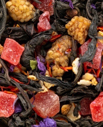 СОСТАВ: индийский черный байховый чай, цедра апельсина, плоды тутовника, цукаты ананаса, мальва, календула, лилия, гвоздика. Содержит арома масла.