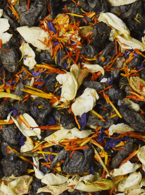 Купаж на основе зеленого классического китайского чая Ганпаудер, с добавлением лепестков сафлора, мальвы, жасмина.  Содержит пищевые ароматические масла.