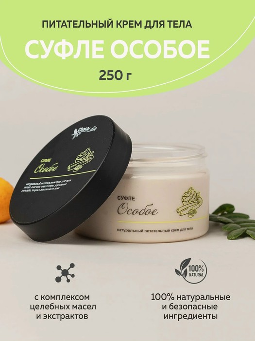 Натуральный питательный крем для тела СУФЛЕ ОСОБОЕ питает, смягчает, способствует улучшению рельефа, тонуса и эластичности кожи.