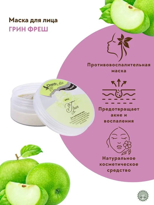 Противовоспалительная маска, обладает антибактерицидным и антисептическим действием, предотвращает угревую сыпь воспаления.