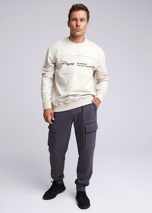 Брюки на манжете по низу из плотного трикотажного полотна ""футер"" с широким поясом и шнуром. Для функциональности предусмотрены боковые карманы и накладные. Брюки в стиле Sport Casual составят отличный комплект к бомберу и футболке.