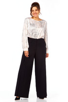 Брюки зауженные из поливискозного трикотажного полотна джерси. Притачной пояс со шлёвками, по спинке на внутренней резинке. Спереди гульфик с молнией и крючком. Боковые карманы с отрезным бочком.