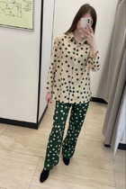 Брюки широкие из вискозного трикотажного полотна пике. По талии притачной пояс с внутренней резинкой. Боковые карманы с отрезным бочком. По переду и спинке защипы, внизу боковые разрезы.