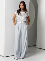 Брюки широкие из трикотажного полотна джерси. По талии притачной пояс на внутренней резинке со шнуром из основного полотна. Боковые карманы с отрезным бочком.