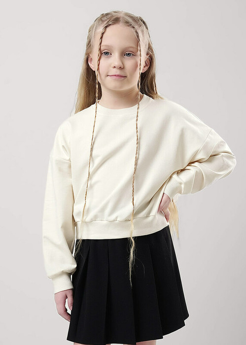 Стильный укороченный джемпер станет модной новинкой в твоём гардеробе! Комфортная посадка по фигуре, актуальный объём и актуальная длина- то, что нужно для создания повседневного школьного образа и отличного настроения!
