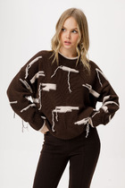 Вязаный джемпер прямого силуэта из акриловой пряжи с добавлением хлопка. Длинный втачной рукав. По низу рукава и изделия манжеты. Основное переплетение жаккард. Округлая горловина с бейкой.