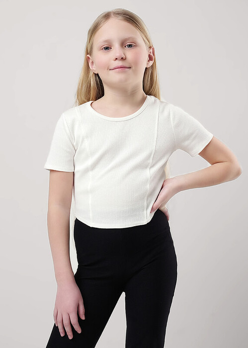 Стильная футболка с имитацией корсета станет модной новинкой в твоем гардеробе! Модель с декоратвными швами и фигурной линией низа выделит тебя из толпы. Сочетай футболку с брюками из новой коллекции и будь в тренде вместе с Clever!