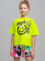 Актуальная футболка умеренного обьема из 100% хлопка отлично впишется в твой летний гардероб. Горловина оформлена кашкорсе. По центру переда трендовый принт.