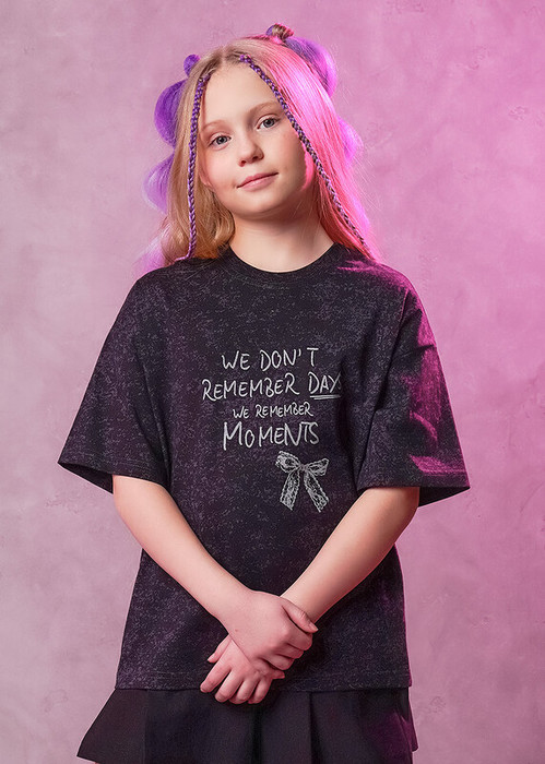 Clever Футболка детская для девочки CLE 866885/11кдн_п т.серый/чёрный