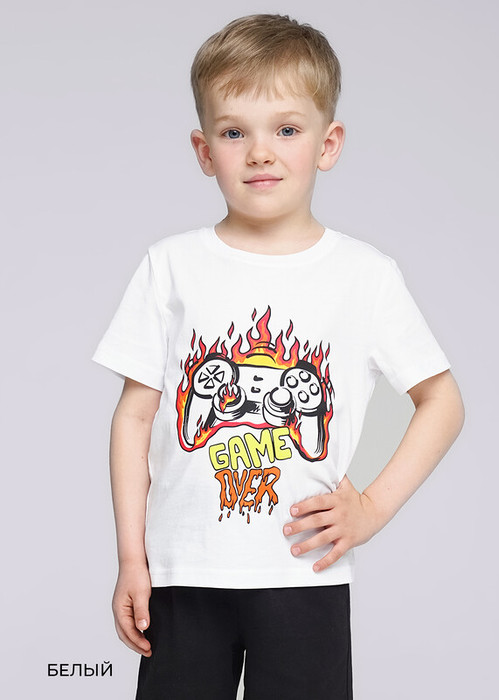 Базовая футболка для мальчика, выполнена из 100% хлопка. Спереди украшена принтом.