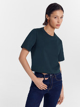 Джемпер умеренного объема из хлопкового трикотажного полотна. Втачной короткий рукав. Округлая горловина с окантовкой.