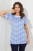 Джемпер умеренного объема из хлопкового трикотажного полотна. Втачной короткий рукав. Округлая горловина с окантовкой.