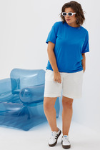 Футболка прямого силуэта из плотного трикотажного полотна. Со спущенным рукавом длиной до локтя. Круглый вырез горловины.