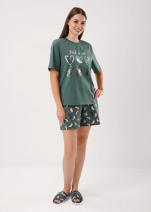 Заказать 25.03 Clever Комплект женский для домаCLE LP15-1208 зелёный/молочный