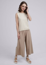 Вязаный джемпер прямого силуэта, из хлопковой пряжи с добавлением акрила переплетение гладь. Без рукавов, широкое плечо. Округлая горловина, по горловине обтачка.