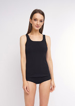 Майка женская из эластичного хлопкового полотна. Широкая бретель. В боковом шве фирменный жаккардовый логотип.