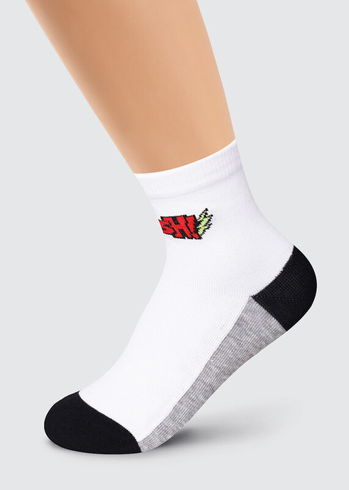 носки для мальчика с выделенным следом и пяткой, с надписью