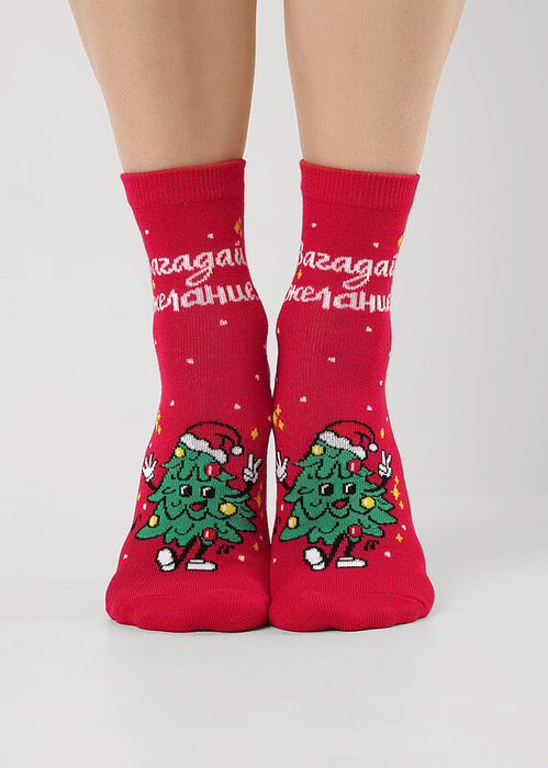 Носки женские с рисунком ""Весёлая ёлочка"" и надписью ""Загадай желание""