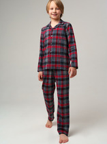 Комплект хлопковой пижамы из джемпера и брюк. Джемпер свободного кроя дополнен эластичной горловиной и манжетами. Брюки среднего объема, эластичный пояс обеспечит комфорт и идеальную посадку. По низу брюк эластичные манжеты.
