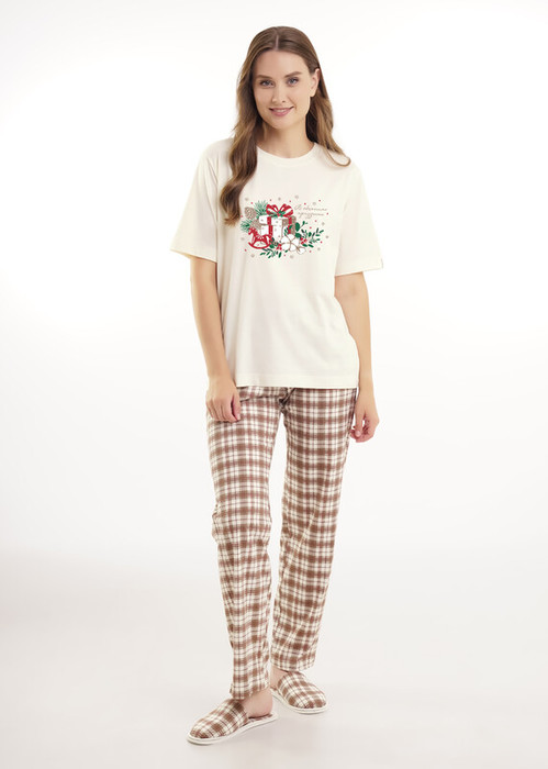 Clever Пижама женская CLE LP15-1200/3 молочный/св.коричневый
