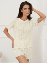 Набор одежды из трикотажного полотна.Футболка с коротким втачным рукавом,отворотом и закрепкой. По горловине обтачка.Спереди принт, нашивка в боковом шве. Брюки с поясом на резинке и киперной лентой. Боковые карманы с отрезным бочком. Внизу брюк резинка.