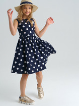 Милое хлопковое платье для яркой принцессы. Романтичные крылышки, широкий рукав, собранный по низу, фигурная завышенная талия и юбка со сборкой. Стильные интересные набивки подарят хорошее настроение на каждый день.